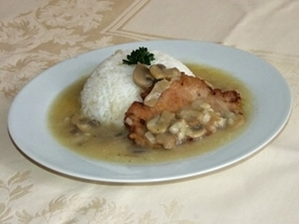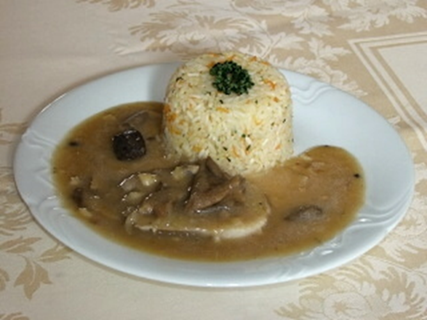 na žampionech, rýže |